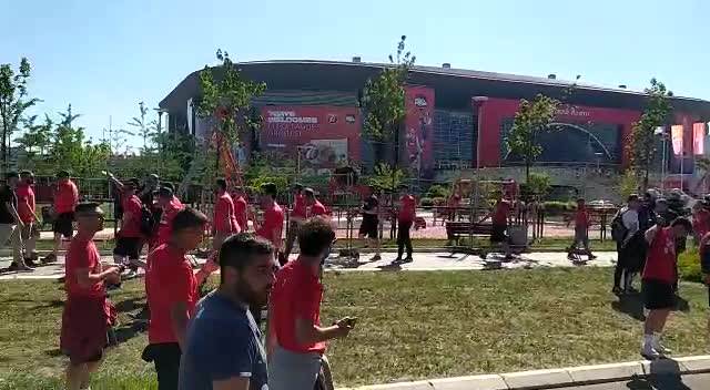 SVI U CRVENO-BELOM: Navijači Olimpijakosa i Crvene zvezde u velikom broju stigli ispred Arene