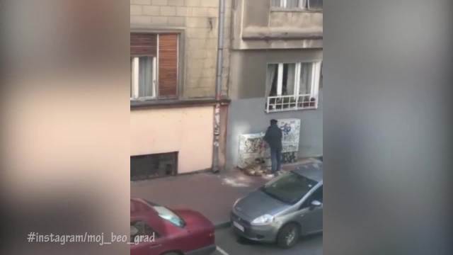 PAS JE LEŽAO A ON GA JE BEZ RAZLOGA ŠUTIRAO! Strašan snimak iz centra Beograda: Mučio psa dok je bio vezan